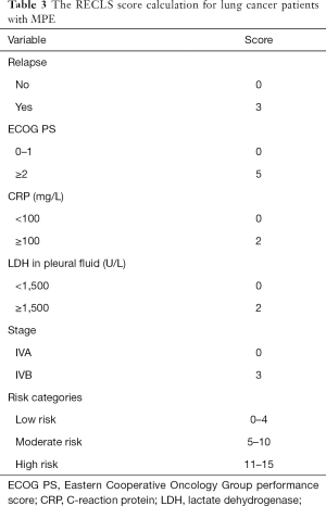 Development Of Recls Score To Predict Survival In Lung Cancer Patients With Malignant Pleural Effusion Zhang Translational Lung Cancer Research